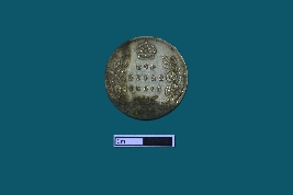 | Description / विवरण | A silver coin with a circular shape. Obv. Bust of King Edward VII facing to the right, dividing a legend within a raised and toothed border. Script EDWARD VII KING & EMPEROR. Rev. The coin bears the denomination in both English and Urdu - Ek rupiya (One rupee) along with the year. Surrounding these elements are a spray of lotus flowers on each side and a crown above, all enclosed within a raised, toothed border. Script ONE RUPEE INDIA 1903. Black patches are visible on both sides. |