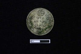 | Description / विवरण | A circular shaped silver coin. Obv. Bust of King Edward VII facing right dividing a legend within a raised and toothed border. Script EDWARD VII KING & EMPEROR. Rev. The value in English and Urdu - Ek rupiya (One rupee) and the year below with a spray of lotus flowers on each side and a crown above, all within a raised toothed border. Script ONE RUPEE INDIA 1906. Patination is visible on both sides. |