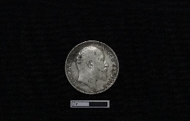 | Description / विवरण | A circular shaped silver coin. Obv. Bust of King Edward VII facing right dividing a legend within a raised and toothed border. Script EDWARD VII KING & EMPEROR. Rev. The value in English and Urdu - Ek rupiya (One rupee) and the year below with a spray of lotus flowers on each side and a crown above, all within a raised toothed border. Script ONE RUPEE INDIA 1906. |
