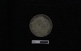 | Description / विवरण | Highlighting a round silver coin, the obverse features a raised and toothed border encapsulating King Edward VII s right-facing bust, with a dividing legend stating EDWARD VII KING & EMPEROR. On the reverse side, the coin presents the denomination in both English and Urdu as Ek rupiya (One rupee), accompanied by the year. Encircling these details are lotus flowers on either side, a crown positioned above, all enclosed within a raised, toothed border. The inscription on the coin reads ONE RUPEE INDIA 1906. |