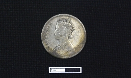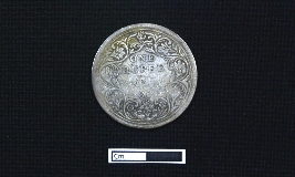 | Description / विवरण | A circular shaped silver coin. Obv. Crown and Ornamental robed bust of Empress Victoria facing left surrounded with legend VICTORIA . All within a raised, toothed border. Rev. Value and date within beaded circle and wreath. Script ONE RUPEE INDIA. Scripts are partly visible. |