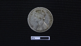 | Description / विवरण | A coin made of silver with a circular shape. Obv. A crowned and adorned bust of Empress Victoria facing left, encircled by the legend VICTORIA EMPRESS within a raised, toothed border. Rev. The value and date are depicted within a beaded circle and wreath, accompanied by the legend ONE RUPEE INDIA 1885. |