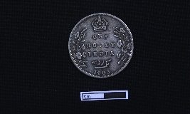 | Description / विवरण | A silver coin with a circular shape. Obv. Bust of King Edward VII facing to the right, dividing a legend within a raised and toothed border. Script EDWARD VII KING & EMPEROR. Black patch is there. Rev. The coin bears the denomination in both English and Urdu - Ek rupiya (One rupee) along with the year. Surrounding these elements are a spray of lotus flowers on each side and a crown above, all enclosed within a raised, toothed border. Script ONE RUPEE INDIA 1905. |