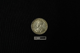 | Description / विवरण | A silver coin, circular in shape, displays on its obverse side the left-facing bust of King George V, separating a legend within a raised and toothed border, inscribed as GEORGE V KING EMPEROR. On the reverse side, the date is encircled by a divided legend in both English and Urdu (ek Rupya), while outside the circle, a wreath formed from roses, thistle, shamrock leaves, and lotus flowers embellishes the design, all enclosed within a toothed border, with the script reading ONE RUPEE INDIA 1918. |