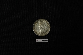 | Description / विवरण | A circular silver coin features on its obverse side the bust of King George V with crown faced to the left, separating a legend contained within a raised and toothed border. The inscription reads GEORGE V KING EMPEROR. On the reverse side, the date is encircled by a division of the legend in both English and Urdu, denoting ek Rupya. Surrounding this, an outer wreath comprised of roses, thistle, shamrock leaves, and lotus flowers enhances the design, all encapsulated within a toothed border. The inscription reads ONE RUPEE INDIA 1916. |