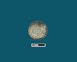 | Description / विवरण | A circular silver coin features on its obverse side the bust of King George V with crown faced to the left, separating a legend contained within a raised and toothed border. The inscription reads GEORGE V KING EMPEROR. Black patches are visible. On the reverse side, the date is encircled by a division of the legend in both English and Urdu, denoting ek Rupya. Surrounding this, an outer wreath comprised of roses, thistle, shamrock leaves, and lotus flowers enhances the design, all encapsulated within a toothed border. The inscription reads ONE RUPEE INDIA 1913. |