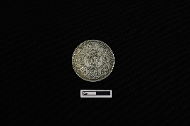 | Description / विवरण | A silver coin, circular in shape, displays on its obverse side the left-facing bust of King George V, separating a legend within a raised and toothed border, inscribed as GEORGE V KING EMPEROR. On the reverse side, the date is encircled by a divided legend in both English and Urdu (ek Rupya), while outside the circle, a wreath formed from roses, thistle, shamrock leaves, and lotus flowers embellishes the design, all enclosed within a toothed border, with the script reading ONE RUPEE INDIA 1920. |
