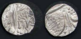 | Description / विवरण | Descrpn./Obv In the centre, a chhatra with Sa and Ta in Gurumukhi script on the left and right of its shaft; traces of the Persian legend seen on the obverse of the bigger Nanakshahi coins of Amritsar mint are also seen. Descrpn./Rev Big peepal leaf and traces of the Persian legend seen on the reverse of the bigger Nanakshahi coins of Amiritsar mint - Shri Amritsarjiv zarb [VS Year] Takht maimanat julus manus Akal Bakht. Especially traces of alif of Akal and te of Takht and maimanat are seen |