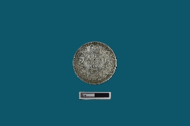 | Description / विवरण | A circular silver coin features on its obverse side the bust of King George V with crown faced to the left, separating a legend contained within a raised and toothed border. The inscription reads GEORGE V KING EMPEROR. On the reverse side, the date is encircled by a division of the legend in both English and Urdu, denoting ek Rupya. Surrounding this, an outer wreath comprised of roses, thistle, shamrock leaves, and lotus flowers enhances the design, all encapsulated within a toothed border. The inscription reads ONE RUPEE INDIA 1913. |