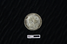 | Description / विवरण | A circular shaped silver coin. Obverse consists of crowned bust of King George V facing left. Script reads GEORGE V KING EMPEROR. In Reverse, within a circle, the date divides legend in English & Urdu (ek Rupya) with the outside of the circle having a wreath made of roses, thistle, shamrock leaves and lotus flowers, all within a toothed border. Script reads ONE RUPEE INDIA 1907. |