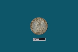| Description / विवरण | A circular shaped silver coin. Obverse consists of crowned bust of King George V facing left. Script reads GEORGE V KING EMPEROR. In Reverse, within a circle, the date divides legend in English & Urdu (ek Rupya) with the outside of the circle having a wreath made of roses, thistle, shamrock leaves and lotus flowers, all within a toothed border. Script reads ONE RUPEE INDIA 1919. |