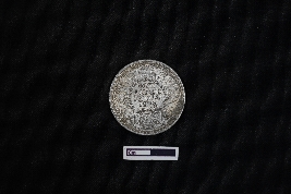 | Description / विवरण | A circular silver coin features on its obverse side the bust of King George V with crown faced to the left, separating a legend contained within a raised and toothed border. The inscription reads GEORGE V KING EMPEROR. On the reverse side, the date is encircled by a division of the legend in both English and Urdu, denoting ek Rupya. Surrounding this, an outer wreath comprised of roses, thistle, shamrock leaves, and lotus flowers enhances the design, all encapsulated within a toothed border. The inscription reads ONE RUPEE INDIA 1919. |