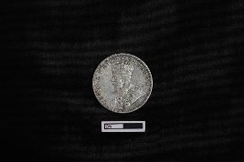 | Description / विवरण | A circular silver coin features on its obverse side the bust of King George V with crown faced to the left, separating a legend contained within a raised and toothed border. The inscription reads GEORGE V KING EMPEROR. On the reverse side, the date is encircled by a division of the legend in both English and Urdu, denoting ek Rupya. Surrounding this, an outer wreath comprised of roses, thistle, shamrock leaves, and lotus flowers enhances the design, all encapsulated within a toothed border. The inscription reads ONE RUPEE INDIA 1917 |