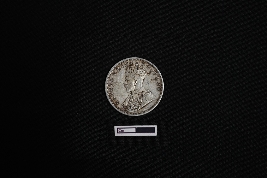 | Description / विवरण | A silver coin, circular in shape, displays on its obverse side the left-facing bust of King George V, separating a legend within a raised and toothed border, inscribed as GEORGE V KING EMPEROR. On the reverse side, the date is encircled by a divided legend in both English and Urdu (ek Rupya), while outside the circle, a wreath formed from roses, thistle, shamrock leaves, and lotus flowers embellishes the design, all enclosed within a toothed border, with the script reading ONE RUPEE INDIA 1916. |