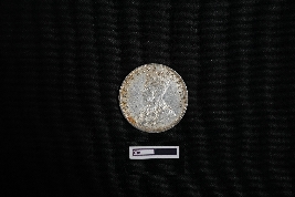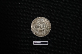 | Description / विवरण | A circular shaped silver coin. Obverse consists of crowned bust of King George V facing left. Script reads GEORGE V KING EMPEROR. In Reverse, within a circle, the date divides legend in English & Urdu (ek Rupya) with the outside of the circle having a wreath made of roses, thistle, shamrock leaves and lotus flowers, all within a toothed border. Script reads ONE RUPEE INDIA 1919. |