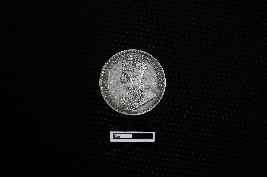 | Description / विवरण | A circular silver coin features on its obverse side the bust of King George V with crown faced to the left, separating a legend contained within a raised and toothed border. The inscription reads GEORGE V KING EMPEROR. On the reverse side, the date is encircled by a division of the legend in both English and Urdu, denoting ek Rupya. Surrounding this, an outer wreath comprised of roses, thistle, shamrock leaves, and lotus flowers enhances the design, all encapsulated within a toothed border. The inscription reads ONE RUPEE INDIA 1918. |