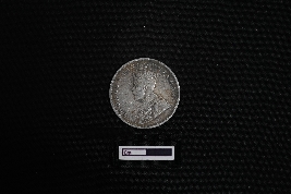 | Description / विवरण | A circular shaped silver coin. Obverse consists of crowned bust of King George V facing left. Script reads GEORGE V KING EMPEROR. In Reverse, within a circle, the date divides legend in English & Urdu (ek Rupya) with the outside of the circle having a wreath made of roses, thistle, shamrock leaves and lotus flowers, all within a toothed border. Script reads ONE RUPEE INDIA 1917. |