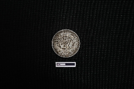 | Description / विवरण | A silver coin, circular in shape, displays on its obverse side the left-facing bust of King George V, separating a legend within a raised and toothed border, inscribed as GEORGE V KING EMPEROR. On the reverse side, the date is encircled by a divided legend in both English and Urdu (ek Rupya), while outside the circle, a wreath formed from roses, thistle, shamrock leaves, and lotus flowers embellishes the design, all enclosed within a toothed border, with the script reading ONE RUPEE INDIA 1916. |