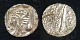 | Description / विवरण | Descrpn./Obv In the centre, a chhatra with Sa and Ta in Gurumukhi script on the left and right of its shaft; traces of the Persian legend seen on the obverse of the bigger Nanakshahi coins of Amritsar mint are also seen. Descrpn./Rev Big peepal leaf and traces of the Persian legend seen on the reverse of the bigger Nanakshahi coins of Amiritsar mint - Shri Amritsarjiv zarb [VS Year] Takht maimanat julus manus Akal Bakht. Especially traces of alif of Akal and te of Takht and maimanat are seen |