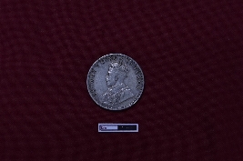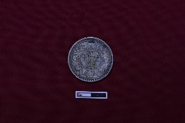 | Description / विवरण | A circular silver coin features on its obverse side the bust of King George V with crown faced to the left, separating a legend contained within a raised and toothed border. The inscription reads GEORGE V KING EMPEROR. On the reverse side, the date is encircled by a division of the legend in both English and Urdu, denoting ek Rupya. Surrounding this, an outer wreath comprised of roses, thistle, shamrock leaves, and lotus flowers enhances the design, all encapsulated within a toothed border. The inscription reads ONE RUPEE INDIA 1918. |