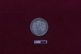 | Description / विवरण | A silver coin with a circular shape. Obv. Bust of King George V with crown facing to the left, dividing a legend within a raised and toothed border. Script GEORGE V KING EMPEROR. Rev. Encircling the date, the legend in both English and Urdu (ek Rupya) is divided, while outside the circle, a wreath crafted from roses, thistle, shamrock leaves, and lotus flowers adorns the design, all enclosed within a toothed border. Script ONE RUPEE INDIA 1917. |