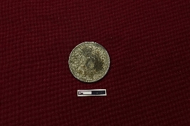| Description / विवरण | A silver coin, circular in shape, displays on its obverse side the left-facing bust of King George V, separating a legend within a raised and toothed border, inscribed as GEORGE V KING EMPEROR. On the reverse side, the date is encircled by a divided legend in both English and Urdu (ek Rupya), while outside the circle, a wreath formed from roses, thistle, shamrock leaves, and lotus flowers embellishes the design, all enclosed within a toothed border, with the script reading ONE RUPEE INDIA 1917. Black patches are visible. |