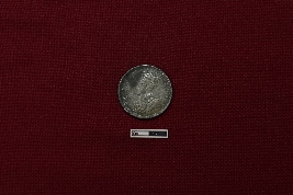 | Description / विवरण | A circular silver coin features on its obverse side the bust of King George V with crown faced to the left, separating a legend contained within a raised and toothed border. The inscription reads GEORGE V KING EMPEROR. On the reverse side, the date is encircled by a division of the legend in both English and Urdu, denoting ek Rupya. Surrounding this, an outer wreath comprised of roses, thistle, shamrock leaves, and lotus flowers enhances the design, all encapsulated within a toothed border. The inscription reads ONE RUPEE INDIA 1918. |