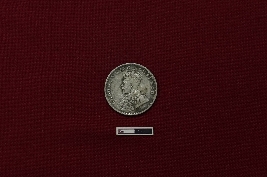 | Description / विवरण | A silver coin, circular in shape, displays on its obverse side the left-facing bust of King George V, separating a legend within a raised and toothed border, inscribed as GEORGE V KING EMPEROR. On the reverse side, the date is encircled by a divided legend in both English and Urdu (ek Rupya), while outside the circle, a wreath formed from roses, thistle, shamrock leaves, and lotus flowers embellishes the design, all enclosed within a toothed border, with the script reading ONE RUPEE INDIA 1918. |