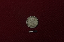 | Description / विवरण | A silver coin, circular in shape, displays on its obverse side the left-facing bust of King George V, separating a legend within a raised and toothed border, inscribed as GEORGE V KING EMPEROR. On the reverse side, the date is encircled by a divided legend in both English and Urdu (ek Rupya), while outside the circle, a wreath formed from roses, thistle, shamrock leaves, and lotus flowers embellishes the design, all enclosed within a toothed border, with the script reading ONE RUPEE INDIA 1919. |