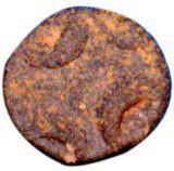 | Description / विवरण | Lead coin with partly cut off orbs of Ujjain symbol on the reverse. Obverse Features abraded. Reverse Ujjain symbol. Orbs partly cut off. |