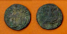 | Description / विवरण | Descrpn./Obv Recumbent bull facing left, wearing jhula (saddle cloth), with trisula (trident) symbol on rump. Above, legend in Sarada script Sri Samantadeva . Descrpn./Rev Rider with lance on caparisoned horse facing right. On left, Sarada letter bhi and on right, Sarada letter ta |