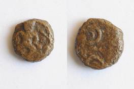 | Description / विवरण | On the obverse Hanuman standing in dvibhanga posture with mountain in right hand and mace in left hand. On the reverse two orbed Ujjayani symbol is depicted. |