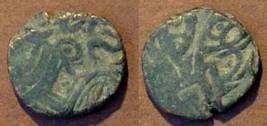 | Description / विवरण | Descrpn./Obv Recumbent bull facing left, wearing jhula (saddle cloth). Above, legend in Sarada script Sri Samantadeva (in cursive letters, mostly truncated and seen partially or off the flan). Descrpn./Rev Rider with lance on caparisoned horse facing right. |
