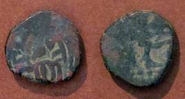 | Description / विवरण | Descrpn./Obv Recumbent bull facing left, wearing jhula (saddle cloth). Above, legend in Sarada script Sri Samantadeva (in cursive letters, mostly truncated and seen partially or off the flan). Descrpn./Rev Rider with lance on caparisoned horse facing right. |