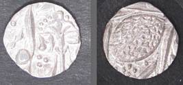 | Description / विवरण | Descrpn./Obv In the centre, a chhatra with Sa and Ta in Gurumukhi script on the left and right of its shaft; traces of the Persian legend seen on the obverse of the bigger Nanakshahi coins of Amritsar mint are also seen. Descrpn./Rev Big peepal leaf and traces of the Persian legend seen on the reverse of the bigger Nanakshahi coins of Amiritsar mint - Shri Amritsarjiv zarb [VS Year] Takht maimanat julus manus Akal Bakht. Especially traces of alif of Akal and te of Takht and maimanat are seen |