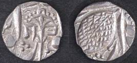 | Description / विवरण | Descrpn./Obv In the centre, a chhatra with Sa and Ta in Gurumukhi script on the left and right of its shaft; traces of the Persian legend seen on the obverse of the bigger Nanakshahi coins of Amritsar mint are also seen. Descrpn./Rev Big peepal leaf and traces of the Persian legend seen on the reverse of the bigger Nanakshahi coins of Amiritsar mint - Shri Amritsarjiv zarb [VS Year] Takht maimanat julus manus Akal Bakht. Especially traces of alif of Akal and te of Takht and maimanat are seen |