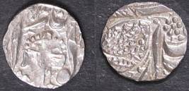 | Description / विवरण | Descrpn./Obv In the centre, a chhatra with Sa and Ta in Gurumukhi script on the left and right of its shaft; traces of the Persian legend seen on the obverse of the bigger Nanakshahi coins of Amritsar mint are also seen. Descrpn./Rev Big peepal leaf and traces of the Persian legend seen on the reverse of the bigger Nanakshahi coins of Amiritsar mint - Shri Amritsarjiv zarb [VS Year] Takht maimanat julus manus Akal Bakht. Especially traces of alif of Akal and te of Takht and maimanat are seen |