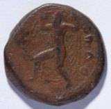 | Description / विवरण | Round shaped Obverse standing king facing to left, wearing Kushana coat and trousers and holding a standard in left hand and offering in a fire altar by right hand. Legend in Greek Reverse Wind God in running posture facing to left. Legend in Greek Oado |