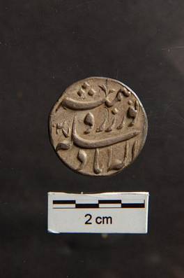 | Description / विवरण | Silver coin of Jehangir. Mint Allahabad. Obverse Zanam Shah, Jahangirshah Akbar Bad. Reverse Maimnat, Near Zar wa Sikka Ilahabad. 1027. |