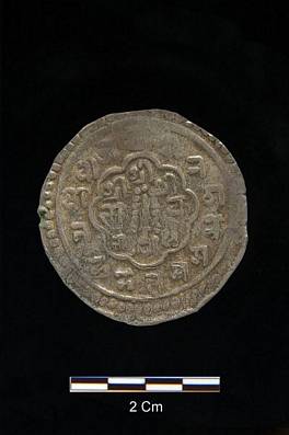 | Description / विवरण | Obverse Sword with garland inside scalloped border with the centre legend Sri Sri Sri Loknath around the sword an deciphered legend around the scalloped border enclosed by a circle. Reverse Central circle enclosing a trident with legend Sri Jay Nath around the circle legend Sri Sri Mahadev inside on ornamental enclosure. |