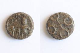 | Description / विवरण | On the obverse Shiva standing, staff in right hand and on upper side wheel is depicted. On the reverse Ujjayani symbol is depicted. |
