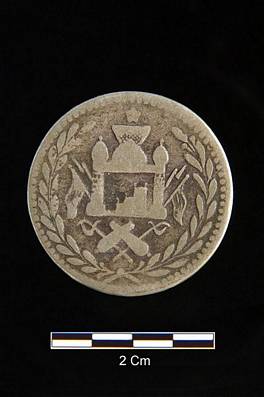 | Description / विवरण | Obverse Afghanistan in Persian script at the top creeper along the border monogram in the centre below 1319. Reverse Mosque inside the border of creepers arms below it. |