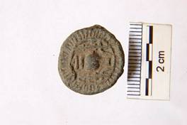 | Description / विवरण | Obverse- Lion to right inside a circle. Reverse- Kalash placed on a stand in between two Trisuls inside a circle. |