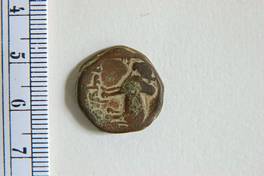 | Description / विवरण | Obverse- Above bull standing to left. Below legend Aarth Mitras . Reverse- Palm tree on the right and a peacock on the left to right. |