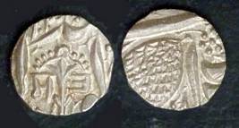 | Description / विवरण | Descrpn./Obv In the centre, a chhatra with Sa and Ta in Gurumukhi script on the left and right of its shaft; traces of the Persian legend seen on the obverse of the bigger Nanakshahi coins of Amritsar mint are also seen. Descrpn./Rev Big peepal leaf and traces of the Persian legend seen on the reverse of the bigger Nanakshahi coins of Amiritsar mint - Shri Amritsarjiv zarb [VS Year] Takht maimanat julus manus Akal Bakht. Especially traces of alif of Akal and te of Takht and maimanat are seen |
