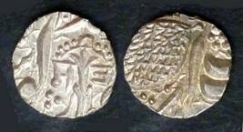 | Description / विवरण | Descrpn./Obv In the centre, a chhatra with Sa and Ta in Gurumukhi script on the left and right of its shaft; traces of the Persian legend seen on the obverse of the bigger Nanakshahi coins of Amritsar mint are also seen. Descrpn./Rev Big peepal leaf and traces of the Persian legend seen on the reverse of the bigger Nanakshahi coins of Amiritsar mint - Shri Amritsarjiv zarb [VS Year] Takht maimanat julus manus Akal Bakht. Especially traces of alif of Akal and te of Takht and maimanat are seen |
