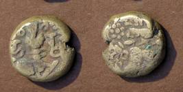 | Description / विवरण | Descrpn./Obv Stylised seated Goddess facing; Sharada legend, Ha (on l.) rsha ra (on r.). Descrpn./Rev Stylised standing king design; Sharada legend, jadeva (on r.) |