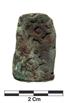 | Description / विवरण | Obverse-Two spiked wheel motif is depicted on surface Reverse- Covered with thick layer of green patina marks |