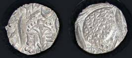 | Description / विवरण | Descrpn./Obv In the centre, a chhatra with Sa and Ta in Gurumukhi script on the left and right of its shaft; traces of the Persian legend seen on the obverse of the bigger Nanakshahi coins of Amritsar mint are also seen. Descrpn./Rev Big peepal leaf and traces of the Persian legend seen on the reverse of the bigger Nanakshahi coins of Amiritsar mint - Shri Amritsarjiv zarb [VS Year] Takht maimanat julus manus Akal Bakht. Especially traces of alif of Akal and te of Takht and maimanat are seen |