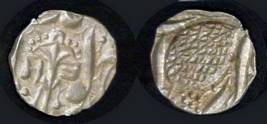 | Description / विवरण | Descrpn./Obv In the centre, a chhatra with Sa and Ta in Gurumukhi script on the left and right of its shaft; traces of the Persian legend seen on the obverse of the bigger Nanakshahi coins of Amritsar mint are also seen. Descrpn./Rev Big peepal leaf and traces of the Persian legend seen on the reverse of the bigger Nanakshahi coins of Amiritsar mint - Shri Amritsarjiv zarb [VS Year] Takht maimanat julus manus Akal Bakht. Especially traces of alif of Akal and te of Takht and maimanat are seen |